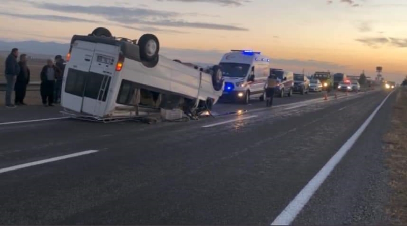 Niğde Kayseri karayolu Konaklı mevkiinde kaza meydana geldi. Tarım işçilerini taşıyan minibüs direksiyon hakimiyetini kaybederek takla attı. Kazada can kaybı olmazken Jandarma olayla ilgili soruşturma başlattı.