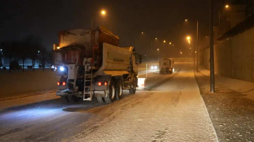 Niğde Belediyesi, şehri etkisi altına alan yoğun kar yağışı ve tipinin olumsuz etkilerini en aza indirmek amacıyla 24 saat esasına göre kesintisiz bir çalışma gerçekleştiriyor. Fen İşleri Müdürlüğüne bağlı 40 personel ve 16 kar küreme aracından oluşan ekipler, gece boyunca kar küreme ve tuzlama çalışmaları yaparak yolları ve kaldırımları açık tutmak için büyük bir özveriyle çalıştı.