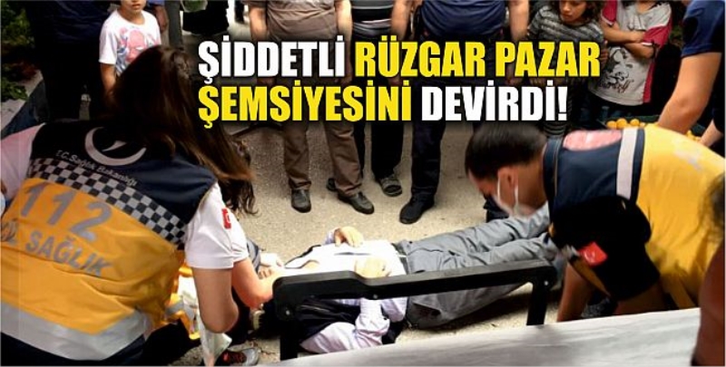 Niğde'de şiddetli rüzgar sebebiyle devrilen pazar şemsiyesi bir vatandaşı yaraladı.