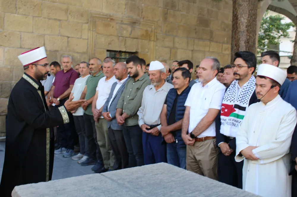 Niğde'de dışarı cami önünde toplanan vatandaşlar, "Katil İsrail" sloganları atarak, şehit edilen Hamas Siyasi Büro Başkanı İsmail Haniye ve Filistin için dua etti.