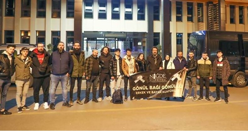 Niğde Berberler ve Kuaförler Odası Başkanı Ahmet Sinan Bircan'ında aralarında bulunduğu gönüllü berber ve kuaförler, depremzedelerin tıraşını ve kişisel bakımlarını yapıyor.