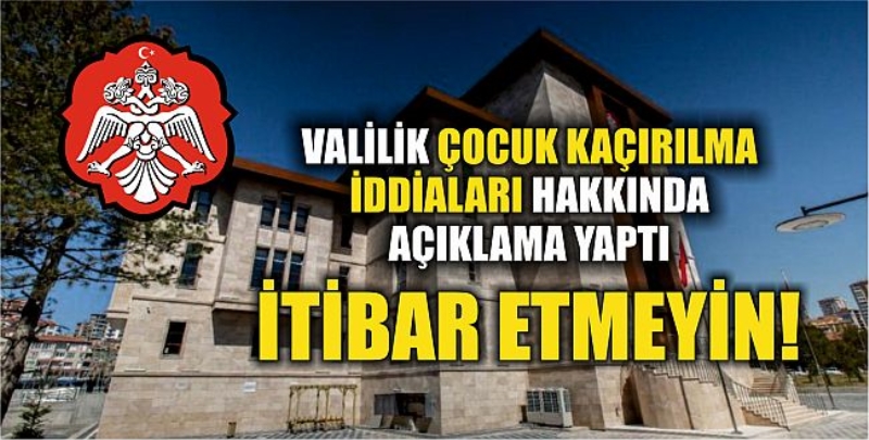 İfadeleri yer aldı. Yapılan açıklamanın devamında ise "Son günlerde, farklı illerde olduğu gibi ilimizde de sosyal medya platformları ve mesajlaşma uygulamaları üzerinden, korku ve paniğe sebebiyet verebilecek tarzda 'çocukların kaçırılmaya çalışıldığı' içerikli ses mesajlarının dolaşımda olduğu tespit edilmiştir. Bu tür dezenformasyon içerikli paylaşımlara karşın, Emniyet Genel Müdürlüğümüz ve diğer illerimiz makamlarınca 'çocukların kaçırılmaya çalışıldığı iddiasının gerçeği yansıtmadığı' yönünde yapılan kamuoyu bilgilendirmelerine rağmen benzer paylaşımlara devam edildiği görülmüştür. Bu kapsamda 'çocuk kaçırma olayı' ile ilgili Emniyet ve Jandarma birimlerimize yapılmış herhangi bir şikayet yada mağduriyet başvurusu bulunmamakla beraber, ilimizin güvenliğini ve huzurunu hedef alan ve gerçeği yansıtmayan bu tür paylaşımlara itibar edilmemesi önemle rica olunur. Kamuoyuna saygıyla duyurulur." denildi.