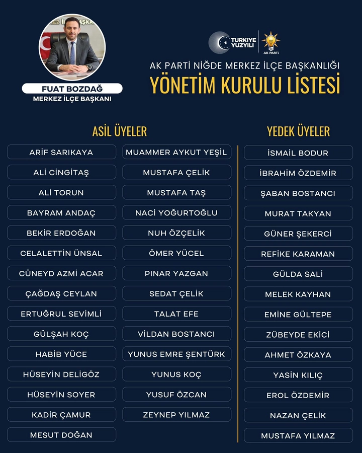 Mesajının sonunda birlik ve beraberlik vurgusu yapan Merkez İlçe Başkanı Fuat Bozdağ, "Bizim sevdamız Niğde, rotamız bellidir. Rabbim yar ve yardımcımız olsun. Niğde için hazırız, kararlıyız" diyerek yeni dönemin startını verdi.