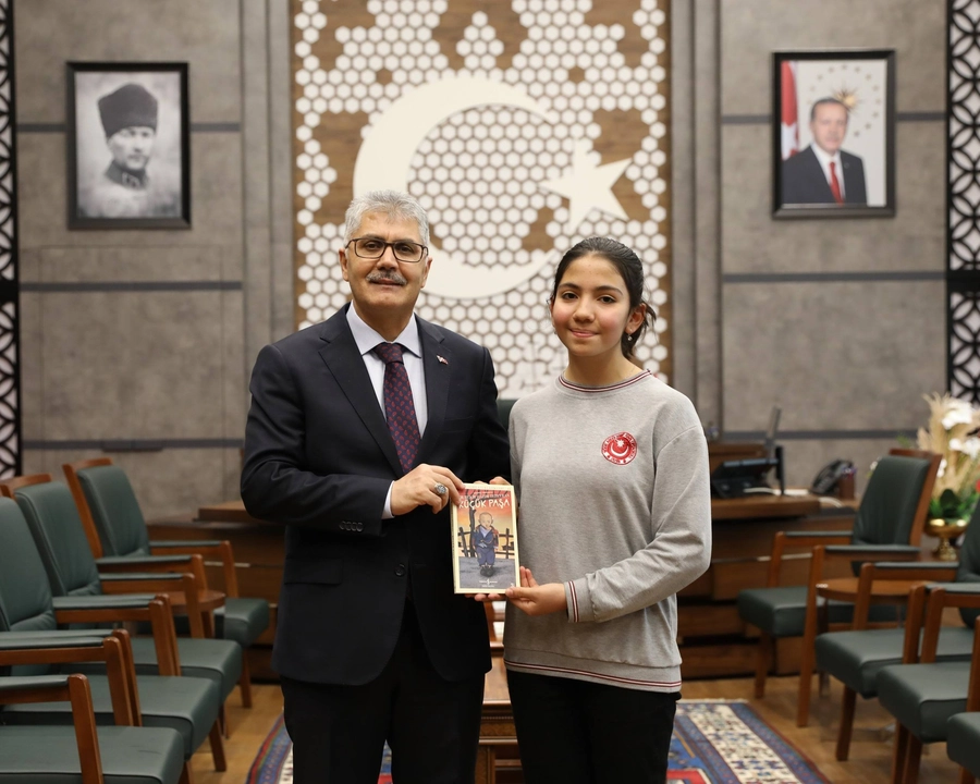 Ziyarette öğrenci Ulviye Hafsa Balcılar, program kapsamında hazırlanan ebru çalışmasını Niğde Valisi Cahit Çelik’e takdim etti. Valilik makamında gerçekleşen bu nazik takdim üzerine Niğde Valisi Çelik, Balcılar’a Ebubekir Hâzım Tepeyran’ın kaleme aldığı Küçük Paşa adlı eseri armağan etti.
