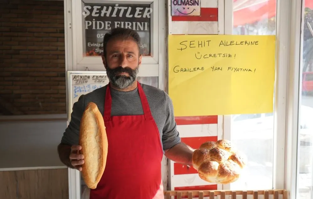 Niğde'nin Şehitler Mahallesi'nde ekmek fırını işletmeciliği yapan Murat Yeşilgül, şehit aileleri ile gazilere karşı hissettiği vefa borcu nedeniyle ücretsiz ekmek hizmeti başlattı.