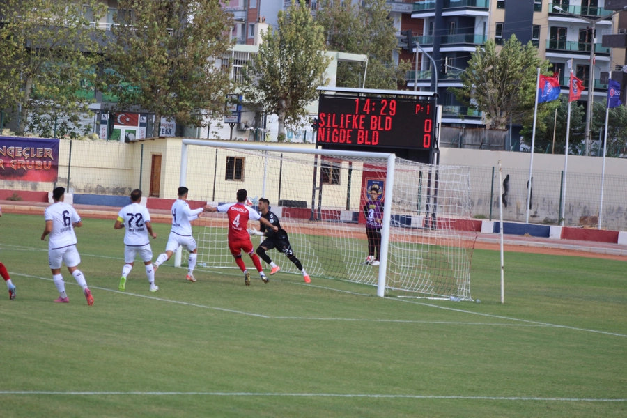 Karşılaşmaya hızlı başlayan Niğde Belediyespor, henüz 10. dakikada Muhammed Emin ile gole yaklaşsa da top az farkla auta çıktı. İlk yarıda daha çok pozisyon üreten konuk ekip, Silifke savunmasını aşmakta zorlandı ve ilk 45 dakika golsüz sona erdi.