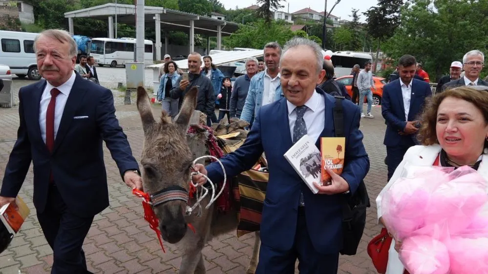 Almanya’da yaşayan Ersin Bilge (60), çocukluk hayalini gerçekleştirmek için eşekle köy köy dolaşarak, çocuklara kitap ve kırtasiye malzemesi dağıtıyor. İlk olarak doğup büyüdüğü Erzincan’ın Çayeli kazasında başlayan projesi, Ardahan, Kars, Burdur, Niğde, Aksaray, Trabzon, Konya, Artvin, Bursa ’den sonra Kırklareli’nin Üsküp Beldesinde öğrencilerle buluştu. Her gittiği köyde ilk olarak eşek bulan Bilge, eşeğin sırtında bulunan sepete kitap ve kırtasiye malzemeleri koyarak öğrencilere dağıtıyor.