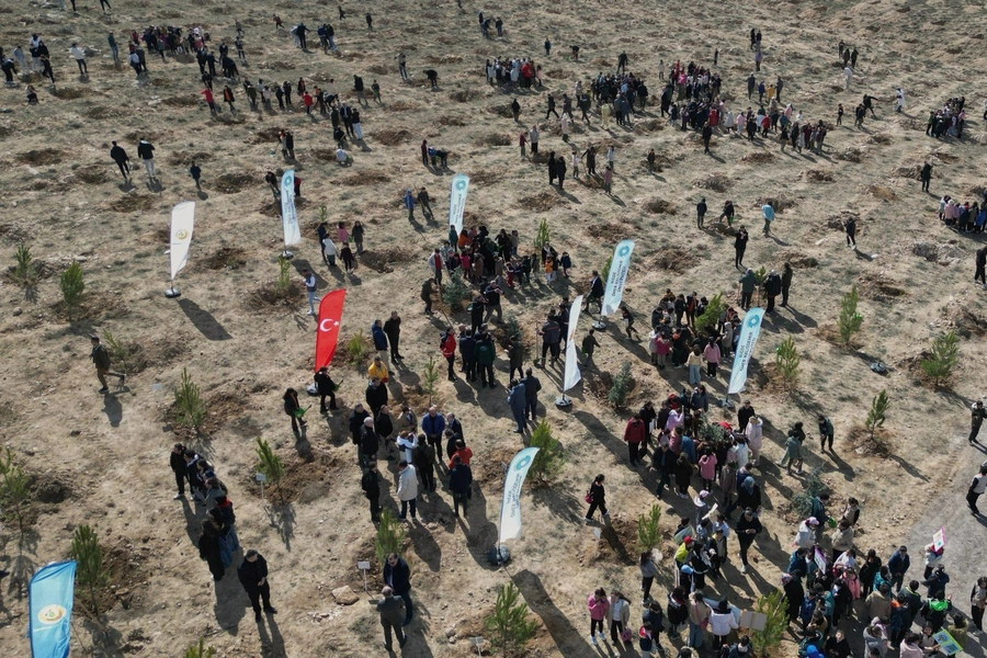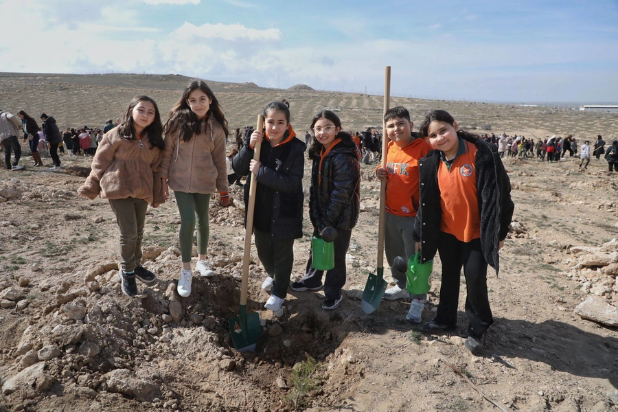 Konuşmaların ardından protokol üyeleri, öğrenciler ve vatandaşlar, fidanları toprakla buluşturarak can suyu verdi.