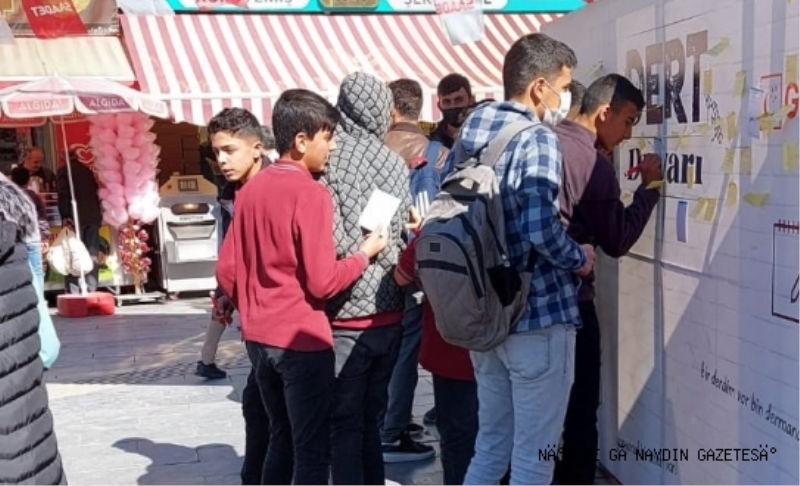 Yapılan etkinlik için Oskar Pastanesinin önünde bulunan caddeye insanların ne tür sıkıntıları olduğunu ve fikirlerini paylaşabilmeleri için küçük not kağıtlarına dertlerini yamaları ‘’ Dert Duvarı’’ isimli pano koyuldu.