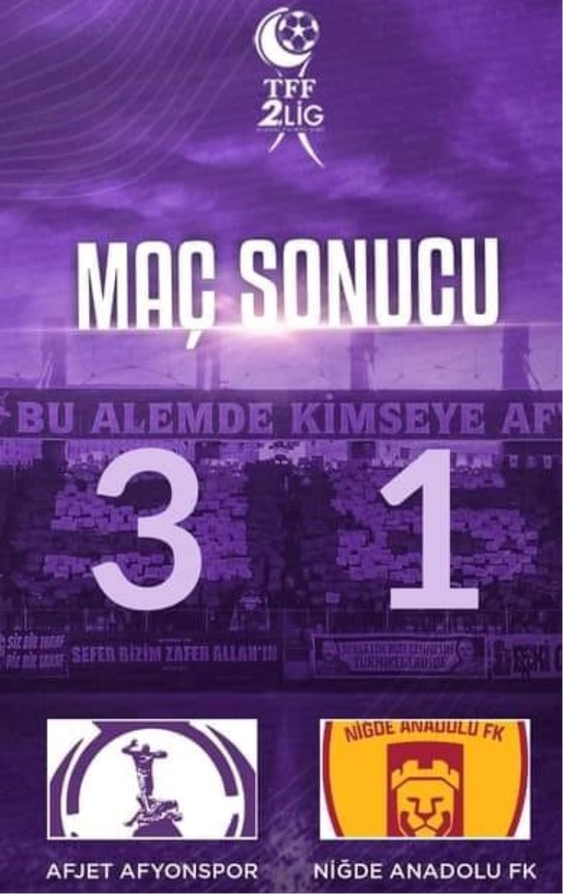 TFF (Türkiye Futbol Federasyonu) 2. Lig Kırmızı Grupta Niğde Anadolu FK deplasmanda Afyon Spor ile Zafer stadında karşı karşıya geldi. Temsilcimiz Niğde Anadolu FK karşılaşmayı 3-1 kaybetti.