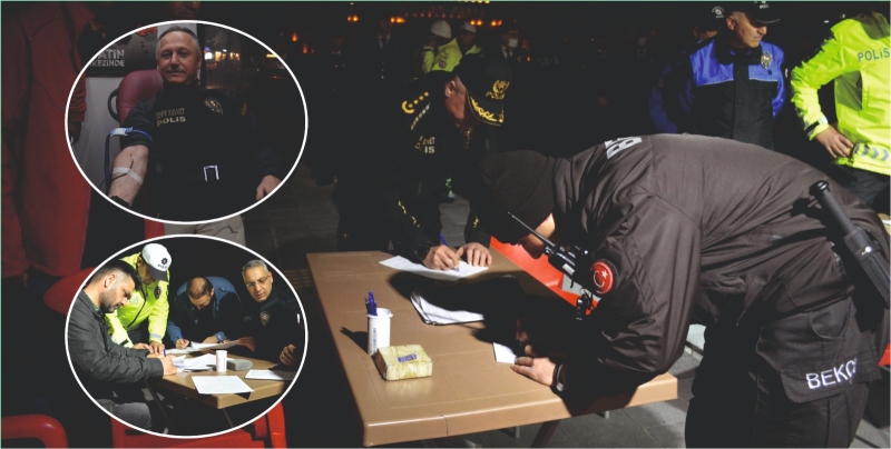 Polis ekipleri, ve çarşı ve mahalle bekçileri, Türk Kızılay tarafından Ömer Halisdemir Meydanı'nda bulunan kan alma aracında kan bağışında bulundu.