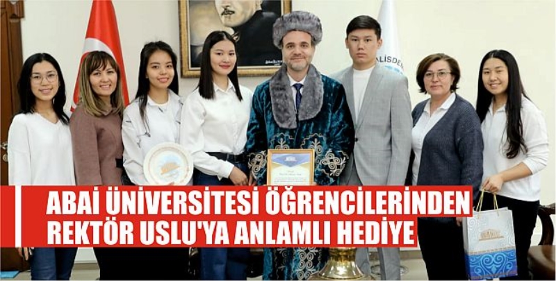Abai Kazak Ulusal Pedagoji Üniversitesi ile yapılmış olunan Akademik İş Birliği Protokolü (MOU) kapsamında Niğde Ömer Halisdemir Üniversitesi Çağdaş Türk Lehçeleri ve Edebiyatları ve Türk Dili ve Edebiyatı Bölümlerinde bir dönem öğrenim görmek üzere gelen uluslararası öğrenciler, Rektör Prof. Dr. Hasan Uslu’ya, Abai Kazak Ulusal Pedagoji Üniversitesi Rektörü Prof. Dr. Darkhan Bilyalov’un hediyesini takdim etti.