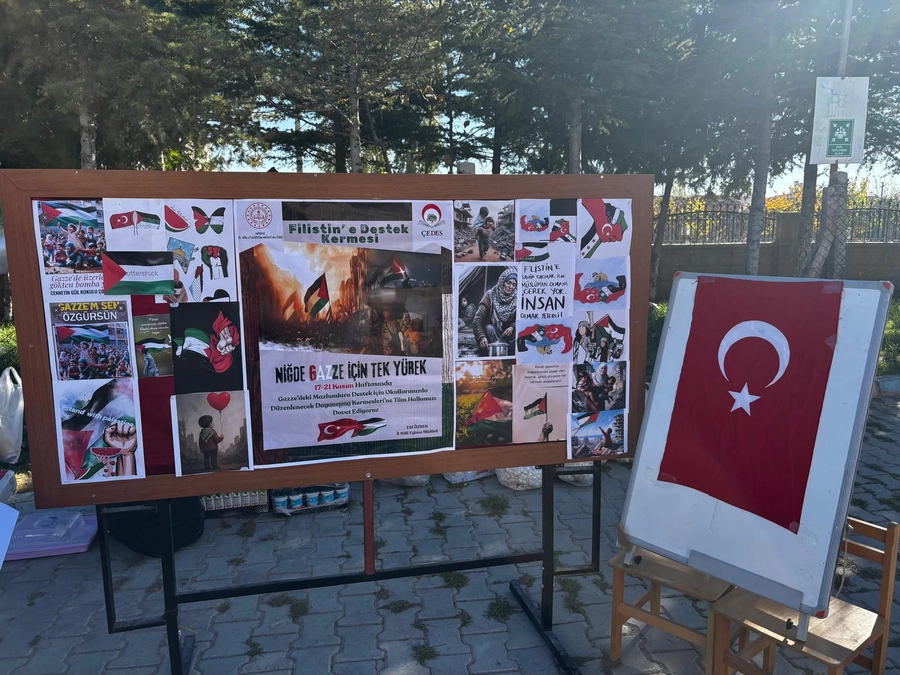 Niğde Alay İlkokulu, insani yardım ve dayanışma ruhunu öğrencilerine aşılamak amacıyla örnek bir etkinliğe imza attı. Okulun CEDES Değerler Eğitimi Kulübü öğretmenleri Öznur Tanık ve Buket Çekinmez’in rehberliğinde, Filistin’e destek amacıyla okul bahçesinde büyük bir kermes düzenlendi.
