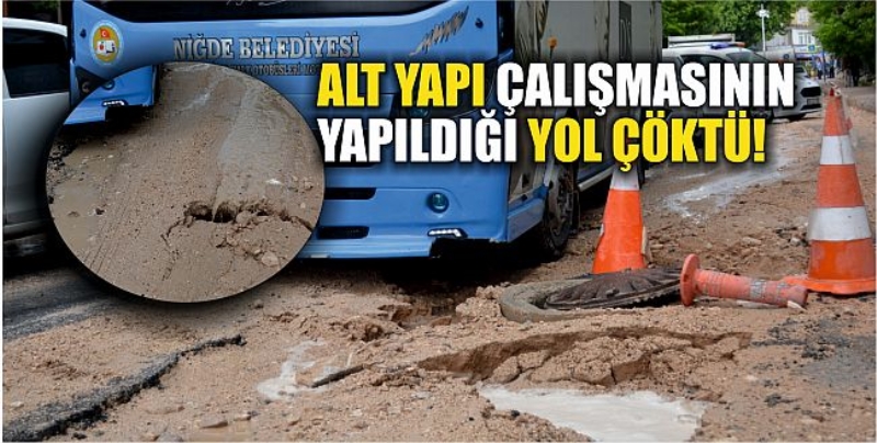 Niğde’de Öğretmenler Caddesi üzerinde yapılan alt yapı çalışmasının gerçekleştirildi yol, yoğun yağışın ardından çöktü. Çalışmanın yapıldığı alana bir Şehir içi otobüsü saplandı. Olayla kimse yaralanmazken otobüste maddi hasar meydana geldi.