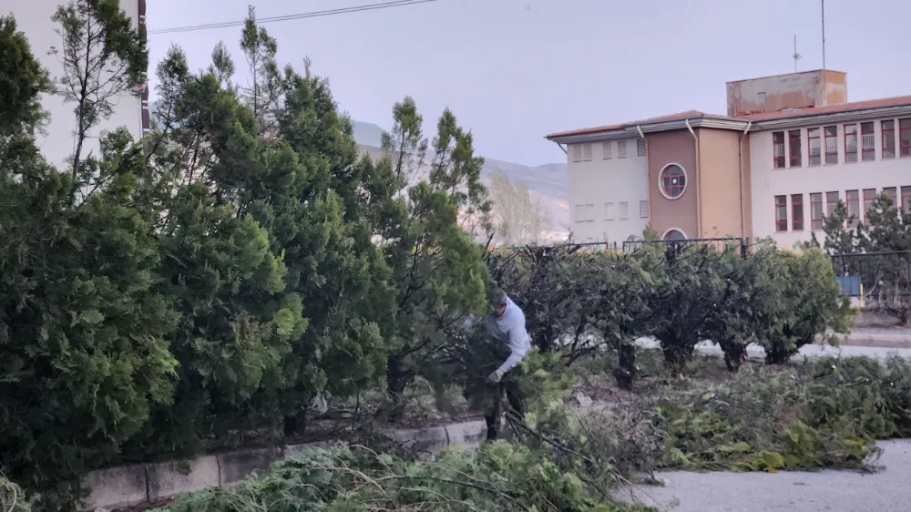 Apartman görevlileri, hummalı bir çalışma temposuyla ağaçların kuru dallarını temizleyerek, sağlıklı ve estetik bir görünüm kazandırıyor. Budama çalışmaları, ağaçların daha iyi gelişmesini ve güvenli bir ortam oluşturulmasını hedefliyor.