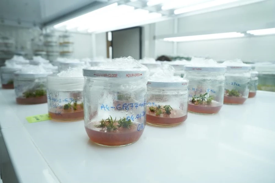 Niğde Ömer Halisdemir Üniversitesi Tarım Bilimleri ve Teknolojileri Fakültesi Tarımsal Genetik Mühendisliği Öğretim Üyesi Prof. Dr. Ufuk Demirel, Niğde Teknopark bünyesinde geliştirdikleri TÜBİTAK ve KOSGEB destekli proje ile mevsim şartları nedeniyle çoğaltılması kolay olmayan sert çekirdekli meyvelerin doku kültürü ile yılın her dönemi çoğaltılmasını sağladı. Uygulanan yöntemle hastalıklardan ve virüslerden arındırılmış, her mevsim şartında üretilebilen bitkilerle fidancıların anaç ihtiyacı karşılanmış olacak. Proje ile ilgili bilgi veren Prof. Dr. Ufuk Demirel, "Burada yaptığımız çalışmalarla sert çekirdekli meyve anaçlarının doku kültürü üretimini yapıyoruz. Kiraz, şeftali, erik ve kayısı bitkilerinin anaçlarını mevsime bağlı olmaksızın kontrollü şartlarda yetiştiriyoruz ve çoğaltıyoruz. Bu bitkilerin normalde elma çok kolay bir şekilde mevsime bağlı, toprakta çoğaltılabiliyor fakat saydığım bitkilerin köklendirilmeleri, çoğaltılmaları doğal şartlarında çok zor. Biz bunu geliştirdiğimiz yöntemle daha hızlı ve daha çok miktarda üretebiliyoruz ve bu zorluğu ortadan kaldırıyoruz" dedi.