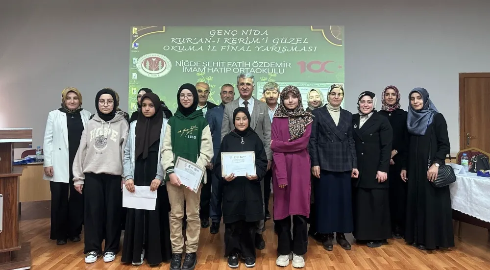 Niğde Şehit Fatih Özdemir İmam Hatip Ortaokulu koordinatörlüğünde Kuran-ı Kerim’i anlama ve güzel okuma becerilerini geliştirmek amacıyla kız öğrenciler arasında Genç Nida Kuran-ı Kerim’i Güzel Okuma ve Hafızlık Yarışması düzenlendi.