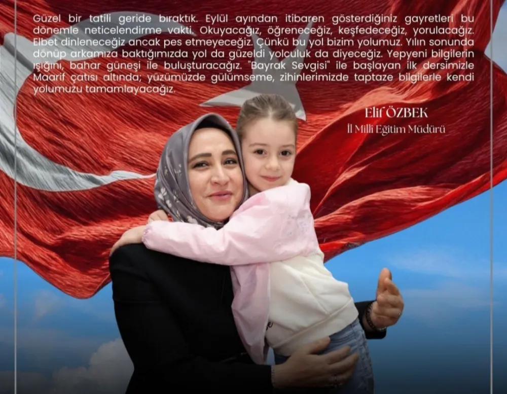 İl Milli Eğitim Müdürü Elif Özbek, mesajının sonunda yeni eğitim öğretim döneminin hayırlı olmasını dileyerek, tüm öğrencilere başarılar temennisinde bulundu.