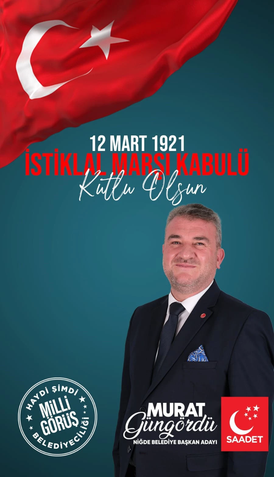 Saadet Partisi Niğde Belediye Başkan Adayı Murat Güngördü, İstiklal Marşı’nın kabulünün 103. yılı münasebetiyle bir mesaj yayımladı.