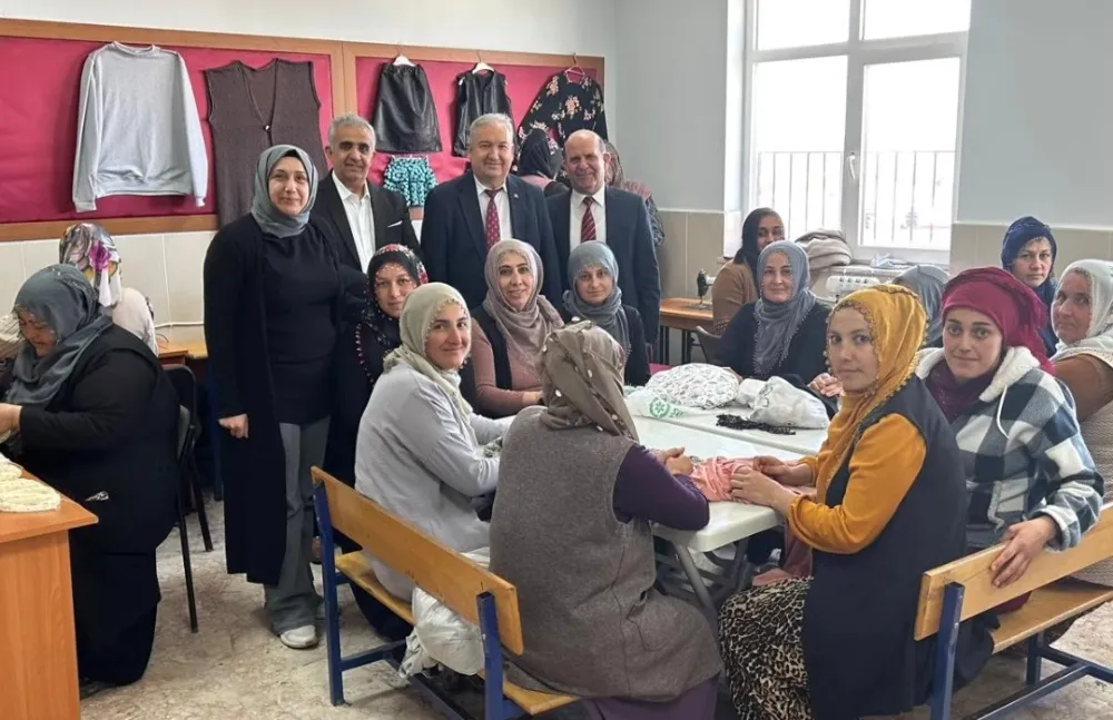 Merkez yetkilileri, kursu yerinde ziyaret ederek kursiyerlerin azmi, üretkenliği ve el emeğiyle ortaya koydukları çalışmaları yakından inceledi.