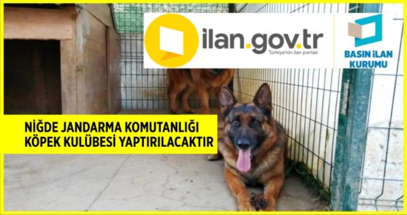 Basın İlan Kurumu’nun (BİK) resmi ilan portalı ilan.gov.tr’de yer alan ihale ilanına göre Niğde İl Özel İdaresi Niğde Jandarma Komutanlıı Köpek Kulübesi Yapımı İşi için ihaleye çıktı.