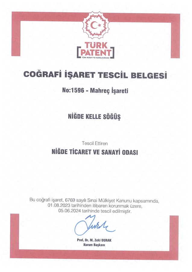 NİTSO "NİĞDE KELLE SÖĞÜŞ" COĞRAFİ İŞARET TESCİL BELGESİNİ DE ALDI