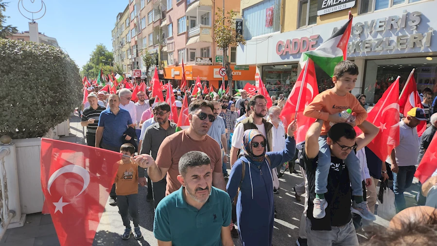 Niğde'de öğlen saatlerinde düzenlenen 'Soykırıma İsyan Filistin'e Destek Yürüyüşü'ne binler katıldı.