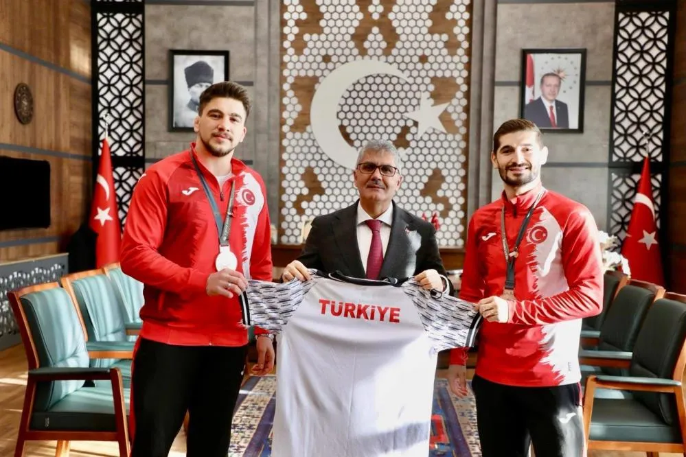 Ulusal ve uluslararası alanda elde ettikleri derecelerle Türk güreşinin öne çıkan isimleri arasında yer alan Niğdeli milli sporcular Ahmet Talha Kacur ve Kadir Kuş, İşitme Engelliler Olimpiyat Oyunları’nda kazandıkları bronz madalyaların ardından Niğde Valisi Cahit Çelik’i makamında ziyaret etti.