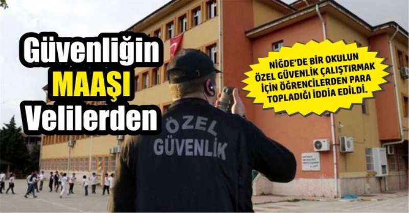 Niğde merkezde bulunan ve yaklaşık 1000 öğrencisi olan bir okulun yönetimi özel güvenlik elemanı çalıştırmak için çareyi velilerden para toplamakta buldu. TYP kapsamında özel güvenlik görevlisi alınmamasından odayı okul yönetimi özel güvenlik elemanının faturasını mecburen velilere kesmek zorunda kaldı. Niğde merkezde bulunan bu okulun özel güvenlik elemanının okul aile birliği üzerinden çalıştırmak istediği, bunun içinde istihdam edilen güvenlik personelinin maaşının ödenmesi için her öğrenciden 40 TL getirmelerini istediği iddia edildi. Yaklaşık bin öğrenciden toplanacak olan 40 Bin TL ile 8 ay özel güvenlik personelinin okulda istihdam edileceği iddia ediliyor.