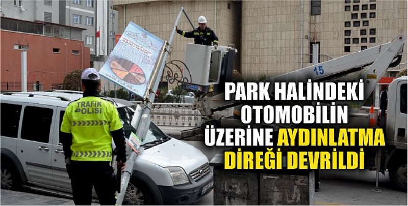 Aydınlatma direği otomobilin üzerine devrildi, otomobilde maddi hasar meydana geldi.