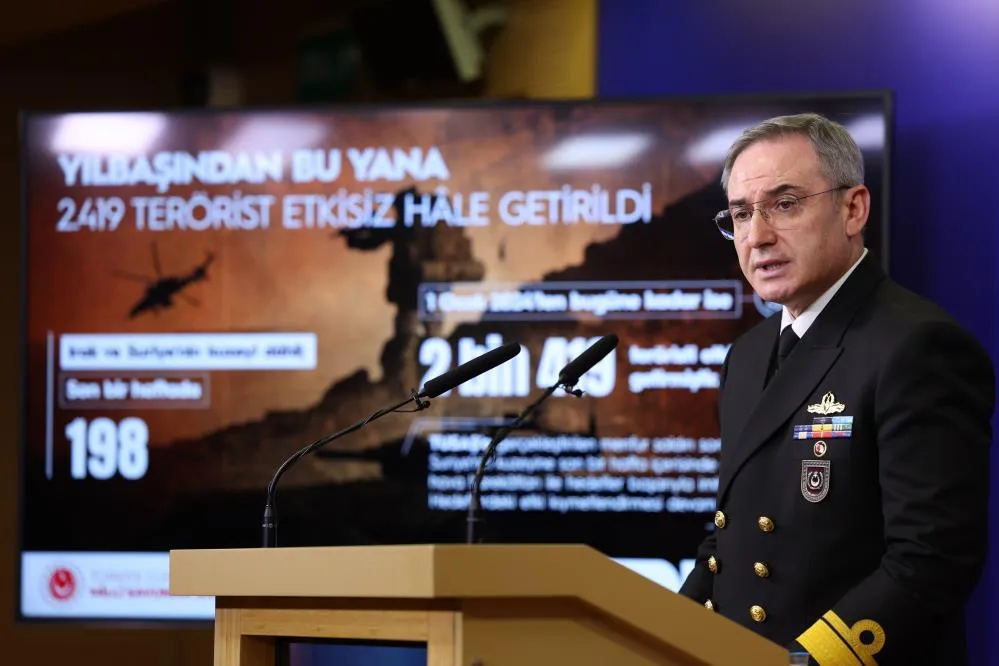 Milli Savunma Bakanlığı tarafından haftalık bilgilendirme toplantısı gerçekleştirildi. Bakanlıkta gerçekleştirilen basın toplantısında konuşan Milli Savunma Bakanlığı Basın Halkla İlişkiler Müşaviri Tuğamiral Zeki Aktürk, gündeme dair son gelişmeleri aktardı. Türk Silahlı Kuvvetleri’nin terörü kaynağında yok etme anlayışıyla kesintisiz bir şekilde ve kararlılıkla sürdürdüğü operasyonlara dikkati çeken Tuğamiral Aktürk, “Irak ve Suriye’nin kuzeyi dâhil son bir haftada 198, 1 Ocak’tan bugüne kadar ise 2 bin 419 (Irak bin 256 / Suriye: bin 163) teröristi etkisiz hâle getirmiştir” ifadelerini kullandı.