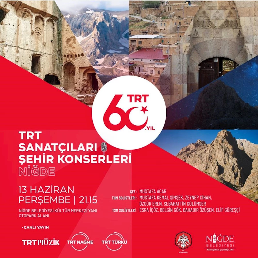 TRT'nin Niğde Belediyesi ile birlikte organize edeceği konser, 13 Haziran Perşembe günü saat 21.15'te Niğde Belediyesi Kültür Merkezi yanında ki otopark alanında gerçekleştirilecek.