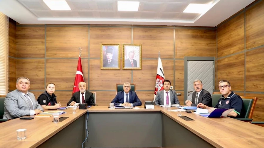 İçişleri Bakan Yardımcısı Mehmet Aktaş başkanlığındaki video konferans toplantısının ardından Niğde Valisi Cahit Çelik basın toplantısı düzenledi. Toplantıda Vali Yardımcısı Ahmet Arık, Niğde Belediye Başkan Vekili Muharrem Çifcibaşı, İl Özel İdaresi Genel Sekreteri Ali Nebol, AFAD İl Müdürü Nihal Öner ve ilgili kurum mirleri katıldı. Vali Çelik yaptığı açıklamada Türkiye’nin afetlerin yoğun yaşandığı bir ülke olduğunu ifade ederek risk azaltmanın önemine değindi. Vali Çelik Valilik Toplantı Salonu'nda düzenlediği basın toplantısında; Niğde'nin doğusunda Ecemiş, batısında Tuz Gölü Fay Hattı'nın bulunduğunu ifade ederken kentin diğer illere göre afetler konusunda daha güvenli olduğuna dikkati çekti. Vali Çelik; "6 Şubat'taki depremde ilimiz de etkilendi. Bu depremde 24 ağır hasarlı, 25 de orta hasarlı binamız oldu. Merkezi yönetimin başı olarak bizler ve buradaki yerel idarecilerin bunu bilip ona göre hareket etmesi gerekiyor. Afetlerde bildiğiniz gibi 4 aşama var. Birincisi risk azaltma, ikincisi hazırlık, üçüncüsü müdahale, dördüncüsü ise iyileştirme. Bu dört aşamada birbiriyle bağlantılı. Risk azaltma konusunda ne kadar iyi hazırlığınız olursa, o riski azaltacak ne kadar iyi tedbirler alırsanız, hazırlık aşamanız o kadar kolay olur, müdahaleniz o kadar güçlü olur ve iyileştirme süreciniz de çok daha kısa sürer" dedi.