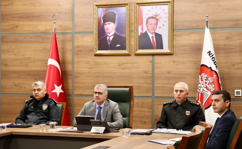 İçişleri Bakanı Ali Yerlikaya başkanlığında 81 il valisinin katılımıyla video konferans sistemi (VKS) üzerinden toplantı gerçekleştirildi. Gerçekleştirilen toplantıya video konferans sistemi üzerinden katılan Niğde Valisi Cahit Çelik’e, Niğde İl Emniyet Müdürü Yılmaz Delen, Niğde İl Jandarma Komutanı Jandarma Albay Gürol Okyar ve Niğde İl Göç İdaresi Müdür V. Güven Aydın eşlik etti.
