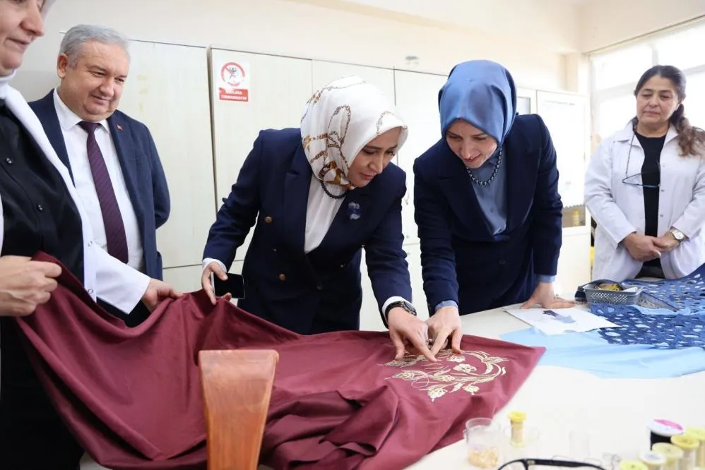 Vali Cahit Çelik’in eşi Nermin Çelik, Valilik Özel Kalem Müdürü Nebahat Bozkurt, Niğde İl Milli Eğitim Müdürü Elif Özbek, Mersin İl Milli Eğitim Müdürü Muhammed Özdemirci, Mersin İl Milli Eğitim Müdür Yardımcısı Nazmi Kendigelen, Akdeniz İlçe Milli Eğitim Müdürü Saim Demir ve Niğde Halk Eğitimi Merkezi Müdürü Orhan Çetin’den oluşan heyet, Enstitü bünyesindeki atölyelerde yürütülen çalışmaları yerinde inceledi. Nermin Çelik ve beraberindeki heyet; 'Zamanın ve Zarafetin İzinde Niğde' teması kapsamında hazırlanan tasarımlar, üretim süreçleri ve sergiye yönelik çalışmalar hakkında detaylı bilgi aldı. Usta öğreticiler ve öğretmenlerin titizlikle ortaya koyduğu eserler incelenerek, emeği geçenlere teşekkür edildi.